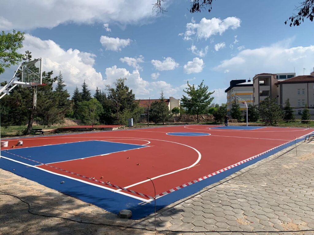Son aşamada potalar monte edilerek epoksi işlemi yapılacak ve okulumuz açık basketbol sahasına kavuşmuş olacak.